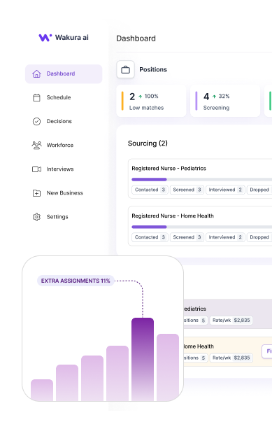 The first AI recruiting assistant built for healthcare staffing agencies, designed to transform your team’s productivity and profitability